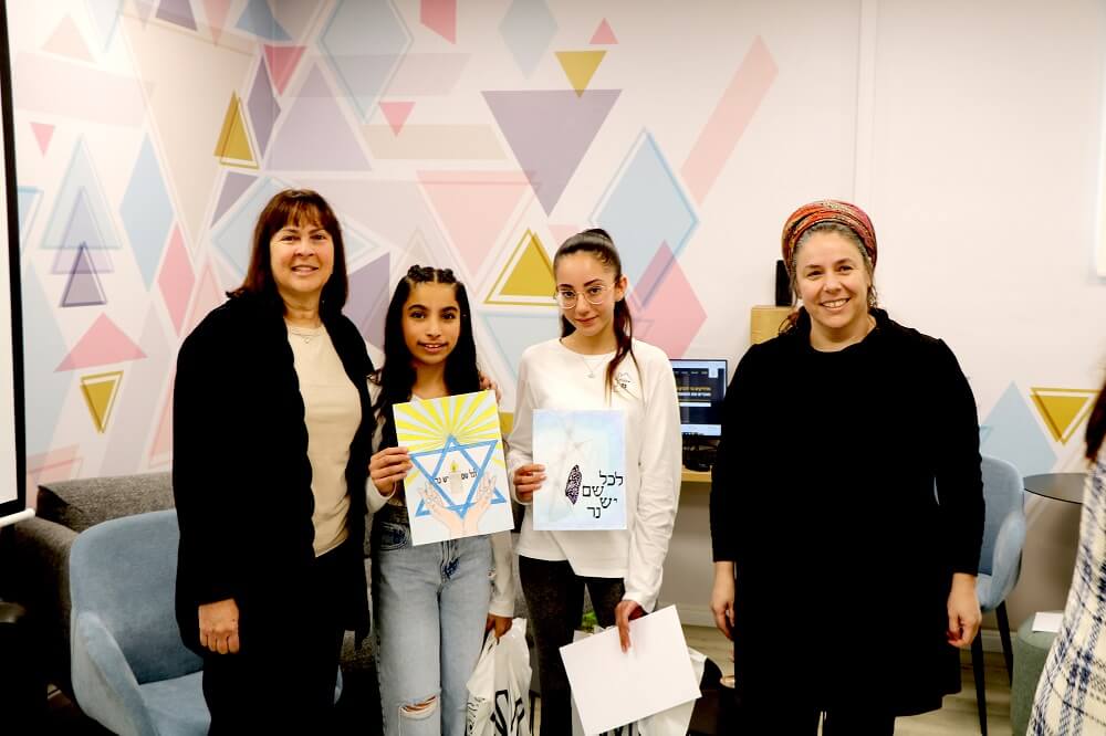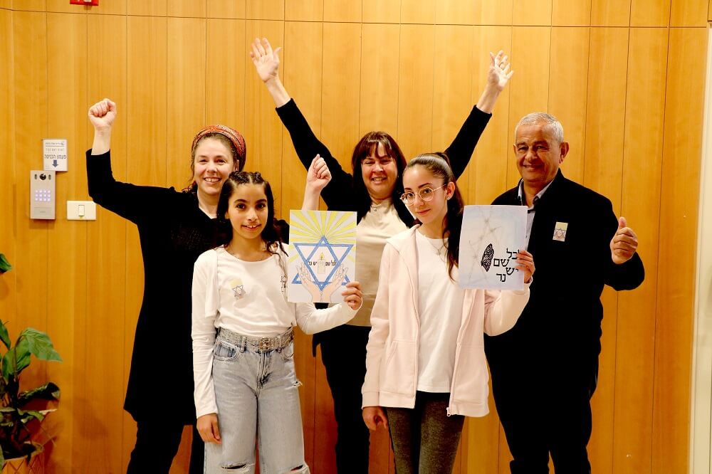 הילדה עפרי רחבי עם ציור המדבקה שנבחרה - מעלה אדומים
